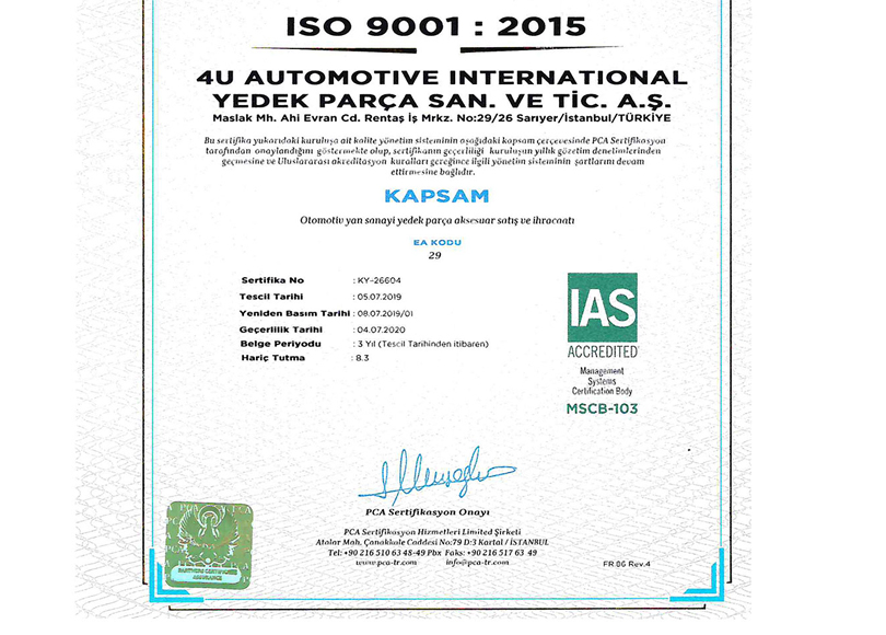 4U Autoparts otomotiv yedek parça sektöründe uzun yıllar edinilen bilgi ve tecrübe ile 2004 yılın da kurulmuştur.